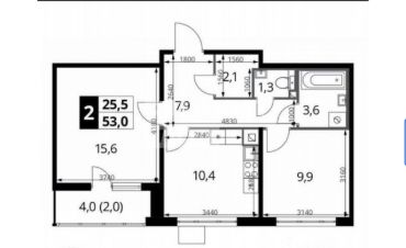 Туалетная комната с душевой кабиной - 3,8кв.м.
