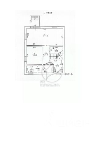 На 1-ом этаже: кухня/гостиная, комната, сан. узел;