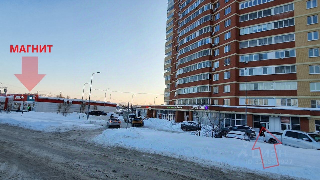 Помещение на въезде в жилой квартал в торговом коридоре рядом с крупными сетевыми ритейлерами. Соседнее помещение - аптека Апрель, далее Винлаб, КиБ и суши бар. В этом же доме ПВЗ WB, салон Черная кость. Помещение с ремонтом (фото от 3 февраля 2026). Квартал из 8 домов, 1784 квартир и 2700 жителей, дома введены в эксплуатацию 2004-2021 г. Дефицит торговых помещений (менее 5% относительно жилой площади). Дефицит продуктовых точек (только Магнит), дефицит точек общепита (пиццерии,кофейни отсутствуют). Интенсивный трафик, отлично просматривается с дороги. Электрической мощности добавим при необходимости.