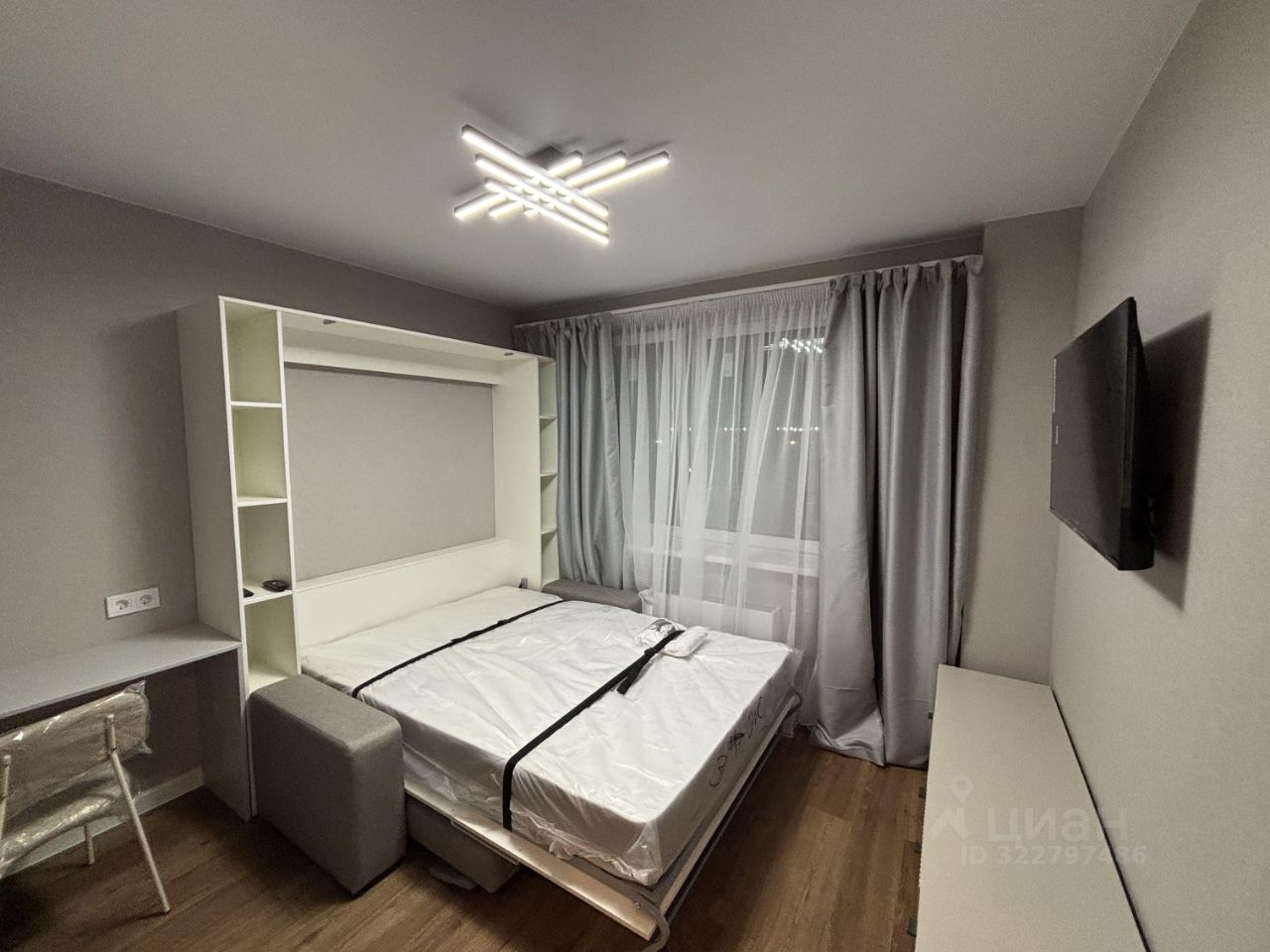Удобства: Установлена кровать - трансформер с ортопедическим матрасом. Встроенная рабочая зона.
