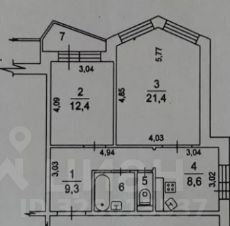 Общая площадь 57,5 м2, жилая 33.8 м2, комнаты изолированные 21.4 и 12.4 м2, кухня 8,6 м2.