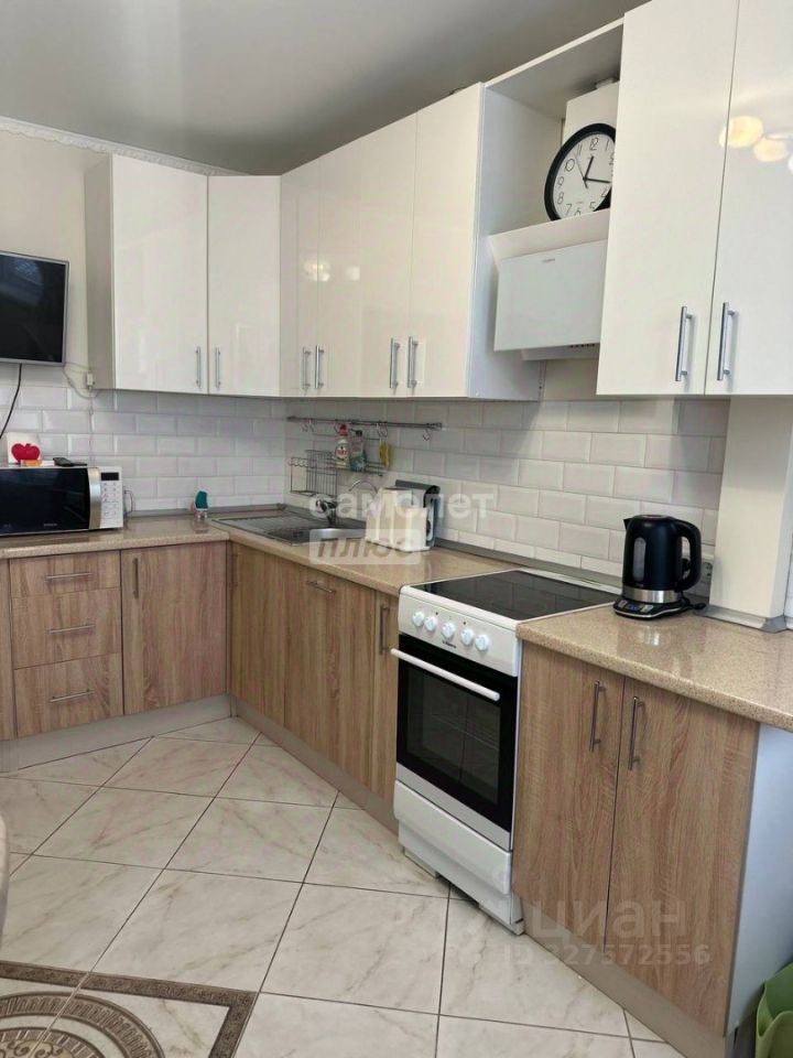 Кухня оборудована современной техникой и мебелью.