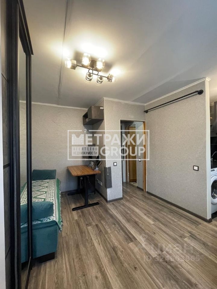 Студия имеет жилую площадь 12 кв. м и кухню площадью 4 кв. м. В квартире сделан косметический ремонт, есть совмещённый санузел. Квартира угловая, с центральным отоплением.