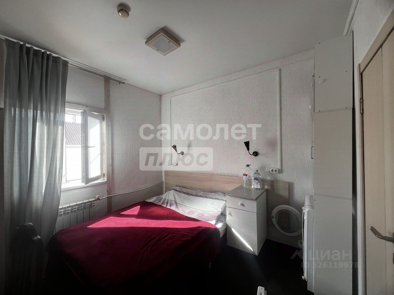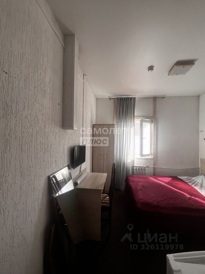 Состояние и оборудование: хороший ремонт, натяжной потолок, мебель, диванкровать, холодильник, телевизор на стене, линолеум. Над входной дверью — антресоль для хранения. Санузел в комнате; установлена вытяжная вентиляция (душ, туалет, раковина). Есть стиральная машина.