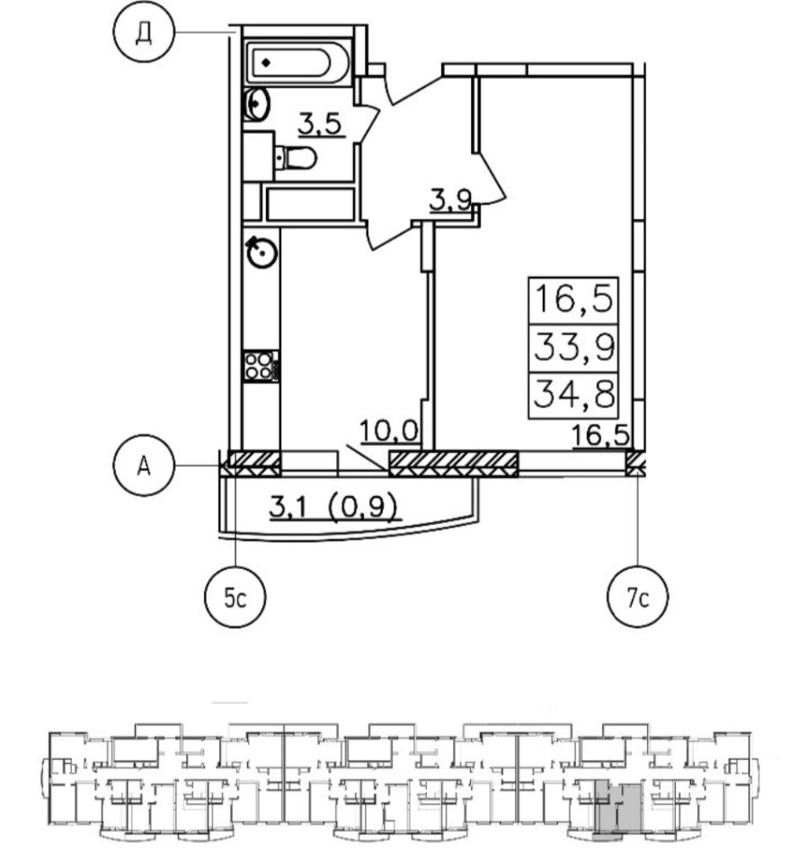 34 м²