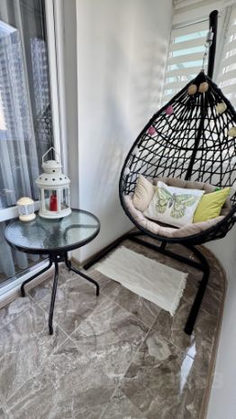 Отдельный островок счастья: Большая застекленная лоджия с садовой качелью. Ваше личное место для утреннего кофе или вечерних размышлений с видом на закат.