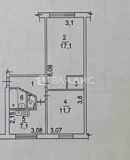 Просторные комнаты (17,1 и 11,7 кв.м.) и кухня (7,1 кв.м.).