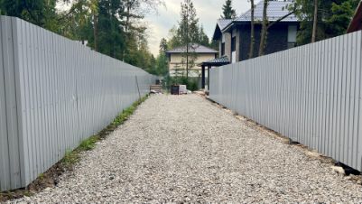 • Удобный заезд и парковка на 6 автомобилей, высокий забор 2,2 м безопасность и приватность.